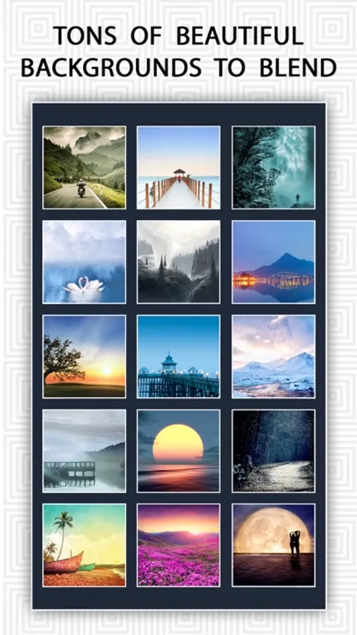 Make your normal daily photos more interesting with ease, just select a picture from your gallery or capture from camera and mix this picture with our existing stunning picture collection or choose another picture from camera/gallery and blend them together to get an amazing result.