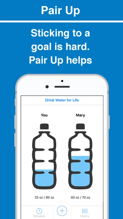 Use on your own or pair up with a friend and keep each other accountable. Our studies have shown people stick to their water intake goals 18x better paired with a friend.