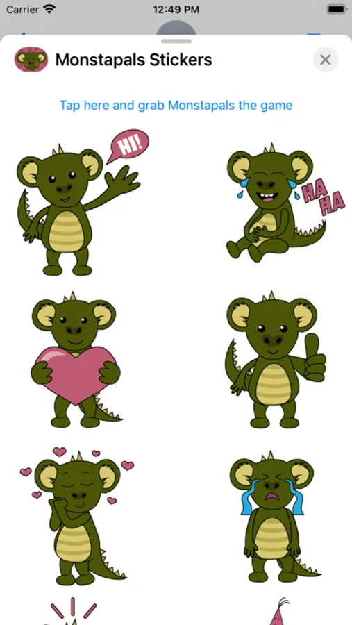 Monstapals Stickers is filled with fun stickers to help express your current mood. Laugh, cry, and party with your friends using these unique Australian animal combinations as featured in the game Monstapals.