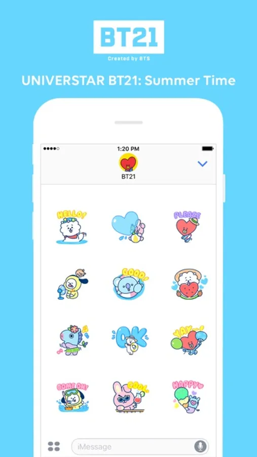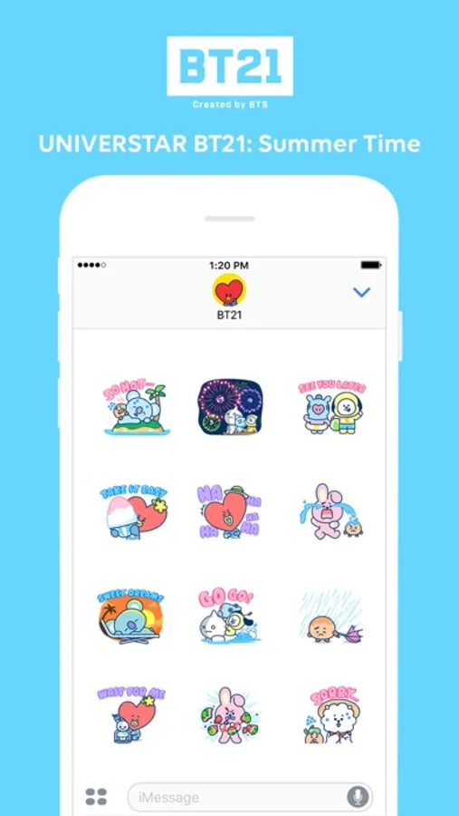 UNIVERSTAR BT21 heads to the sea to beat the heat of a scorching hot summer day! Be as cool as the ocean with your best BT21 friends all over your chats.