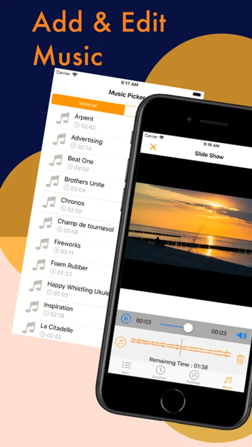 • Choose your favorite music from our gallery or your own