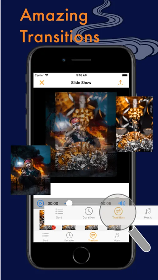 • Select a transition to animate between photos