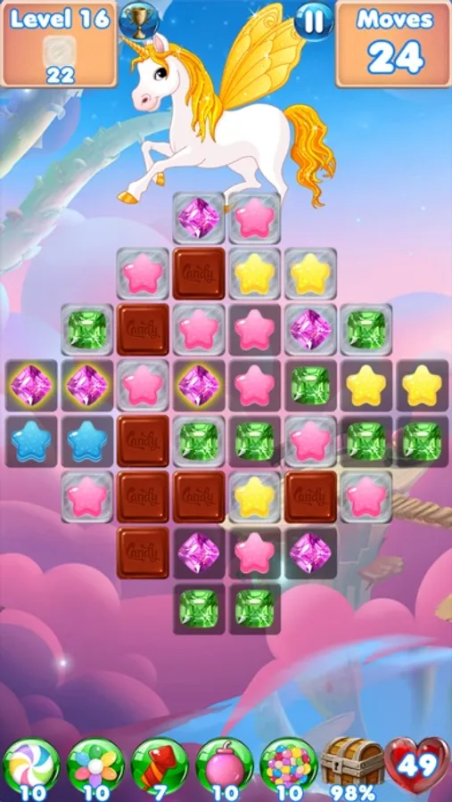 Match stars and gems of the same color to create powerful combos and blast your way through hundreds of levels!