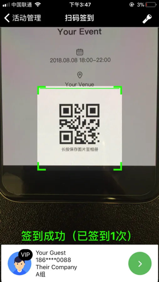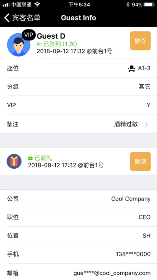 - Guest groups & custom info 宾客可分组、可自定义显示信息