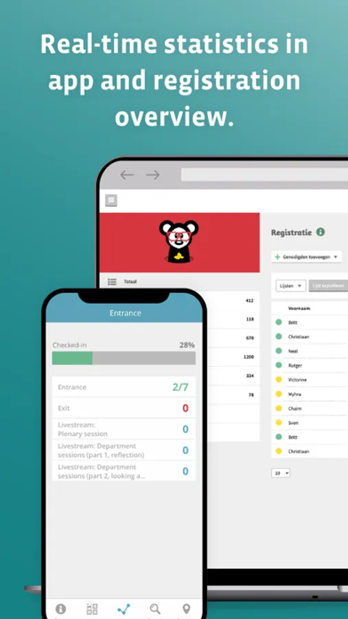 Scan the QR-code on your visitors' e-ticket to check in and check out your visitors on multiple scan points or program elements.