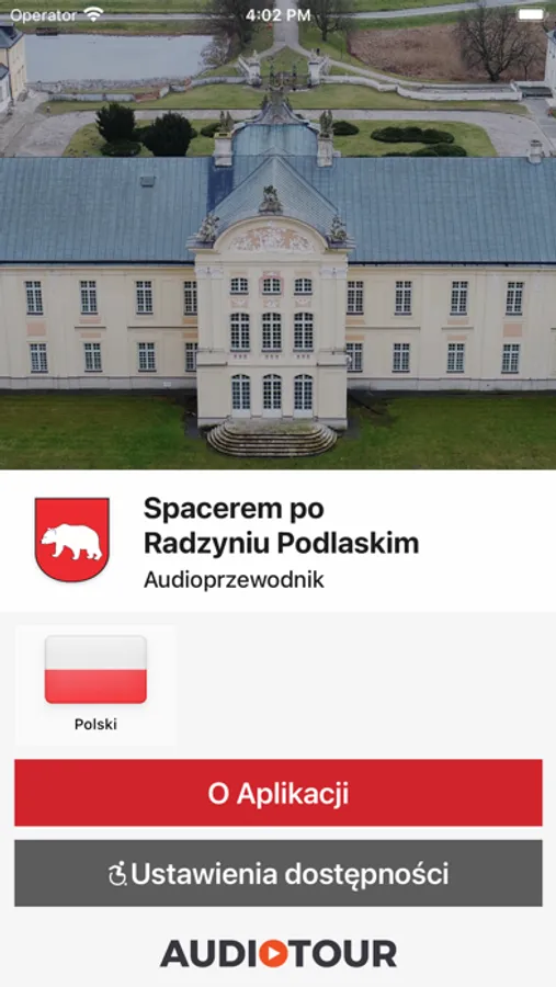 Podziwiamy reprezentacyjną fasadę głównego korpusu pałacu oraz wolno stojący budynek również rokokowej oranżerii; później idziemy parkowymi alejami w cieniu pomnikowych drzew.
