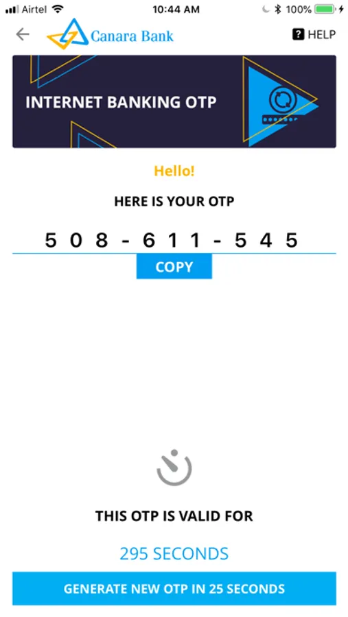> Canara OTP app works without Mobile Network and generates the OTP offline.