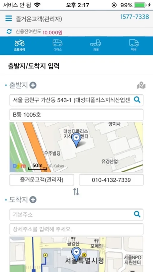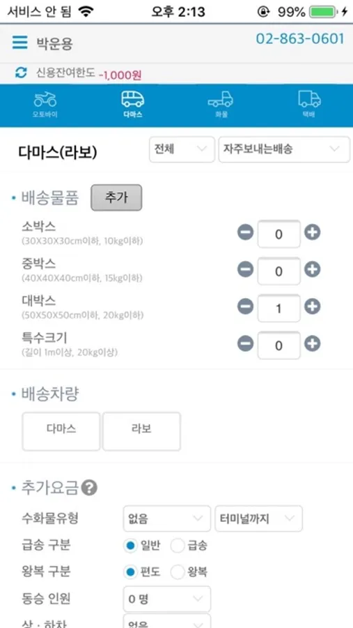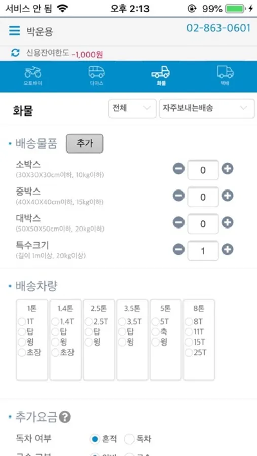 동일한 조건의 화물일 경우 이력을 조회하여 즉시 배송요청과 결제를 할 수 있다