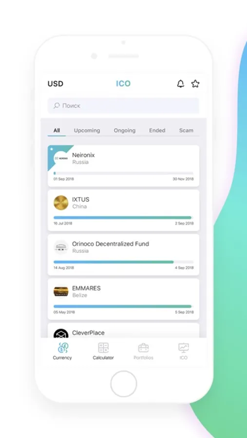 • Listing of cryptocurrency exchanges, ICO-projects and currency converter connected to the system;