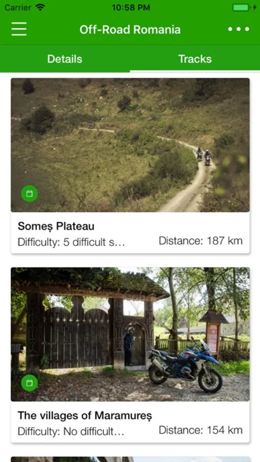 - the starting point, total length, statistics of the roads and the difficulty