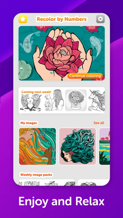 Not sure you want to commit to a single-themed coloring book? No problem — you don’t have to choose, we have everything! Mandalas, landscapes, fashion, romance, unicorns, fairies, birds, animals, and more - we have it all, and we have new pictures for you every week! No matter what you’re in the mood for, you can always find something fun to de-stress with in Recolor By Numbers.