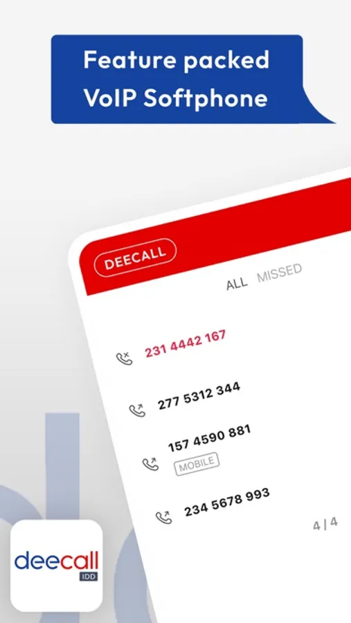DeeCall Application maximizes your telecommunication capacity with hi-speed internet telephony or VoIP service. DeeCall APP is easy to setup and easy to use. You will be ready to make phone calls just like a normal phone—no need to dial any access codes. It is ideal choice of communications with its high voice quality perfect for any needs of any organizations. Our hi-tech services also offer you utmost transparency and superb flexibility. The online and real time VoIP systems provide full call details for easy track record monitoring regardless of the package you choose.