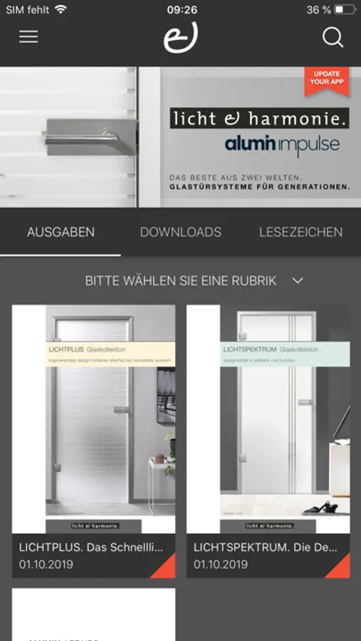 Eine App – drei Kataloge: LICHTPLUS, LICHTSPEKTRUM und ALUMIN AFFAIRS. Mit der licht & harmonie App sichern Sie sich die aktuellsten Kataloge von licht & harmonie und dem Designpartner alumin impulse. So bleiben Sie immer topaktuell informiert über neu erscheinende Kataloge. Dafür einfach Push-Mails für Updates aktivieren.