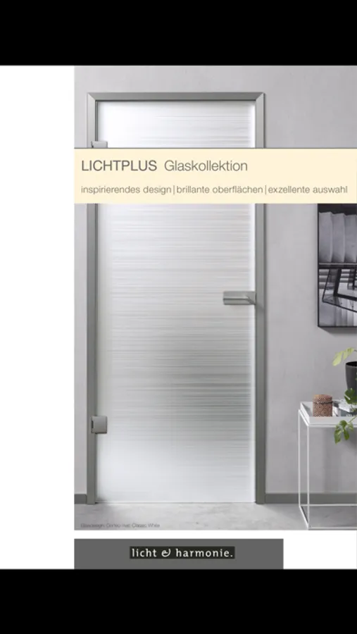 Eine App – zwei Marken: licht & harmonie Glastüren und alumin impulse Aluminiumzargen. Hier passt alles perfekt zusammen – der Designverbund macht‘s möglich. Hier finden Sie das größte hochwertige Komplettsortiment an Glasdesigns und Glastürbeschlägen bis hin zu Türzargen und Sockelleisten aus Aluminium.