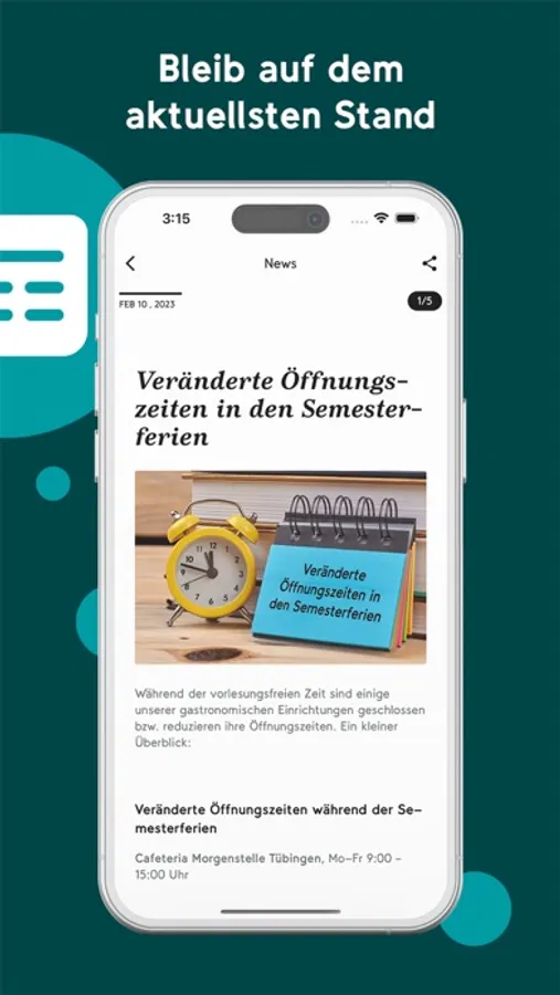 Whether it's the latest news, meal plans, competitions or opening hours - with the relaunched my-stuwe app for iPhones, you can always keep up to date with all things related to the Studierendenwerk Tübingen-Hohenheim.