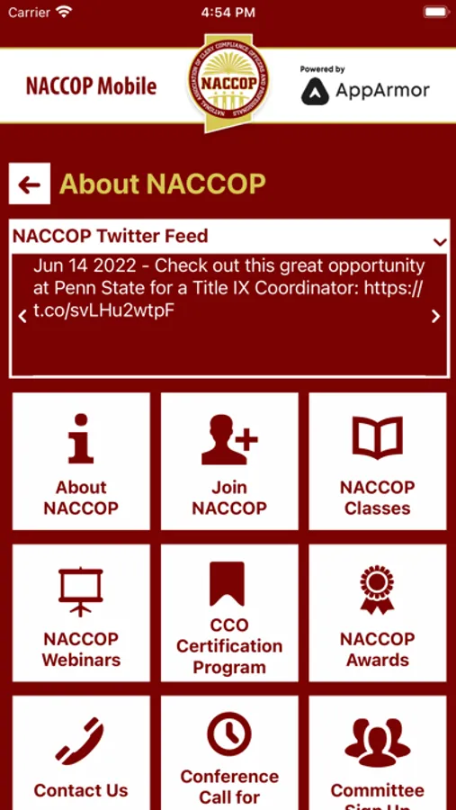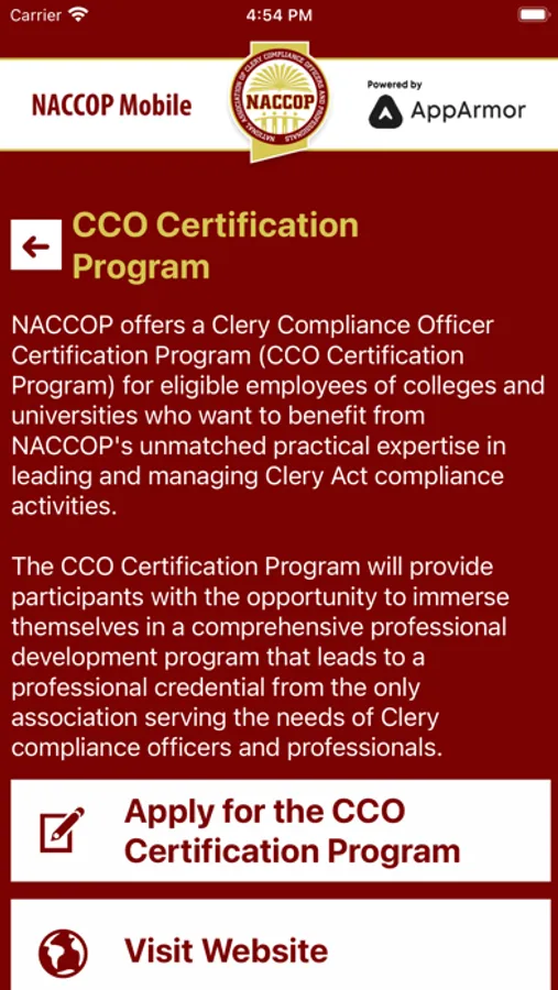 NACCOP Mobile is an essential tool for NACCOP Members! NACCOP Mobile is the Official Mobile App of The National Association of Clery Compliance Officers and Professionals.