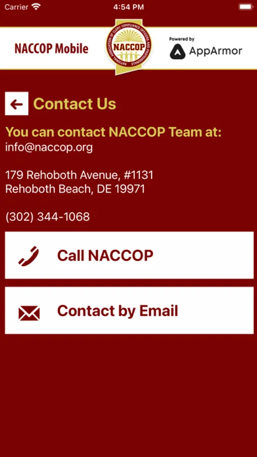 - Contact information for NACCOP.