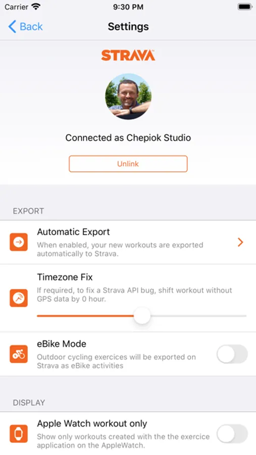 ● Settings to force outdoor cycling to be exported as eBike activities in Strava.