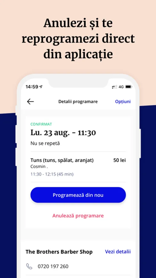 Cei mai buni specialiști și saloane se află doar pe MERO - descoperă specialistul tău favorit. Poți anula și reprograma foarte simplu iar aplicația îți reamintește automat de programare înainte cu o zi.