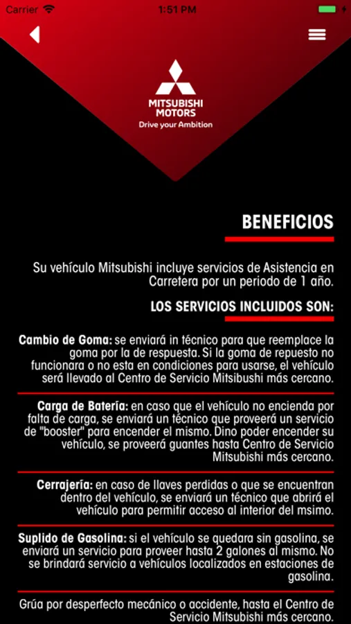 Los vehículos Mitsubishi incluyen un (1) año de asistencia en carretera gratuita como parte de su servicio de garantía. Los servicios están disponibles 24/7 en todo Puerto Rico, e incluyen: