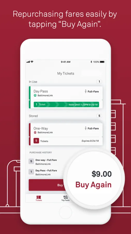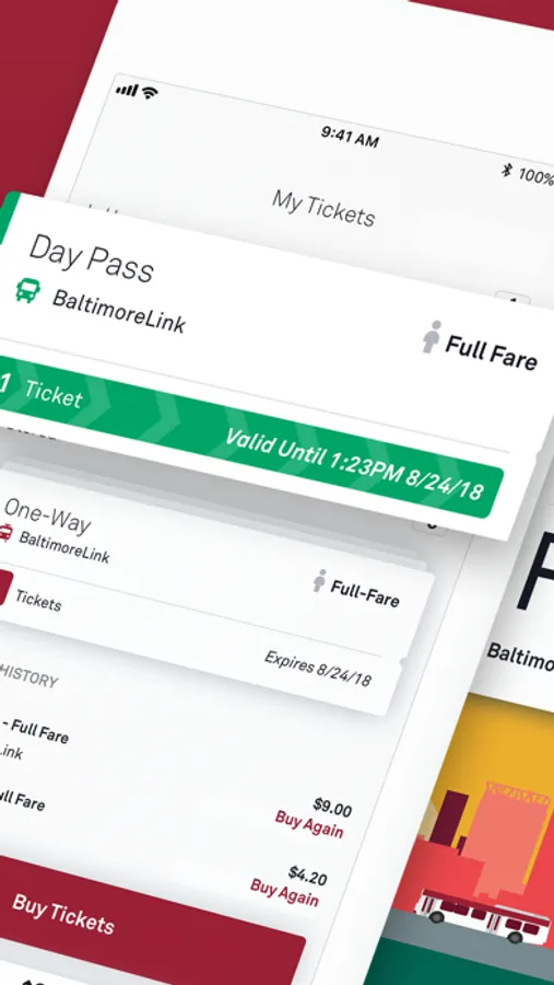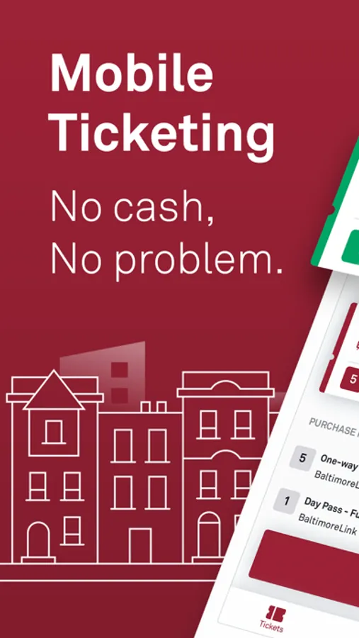 • Purchase BaltimoreLink Local Service, MARC Train, and Commuter Bus tickets all from one app.