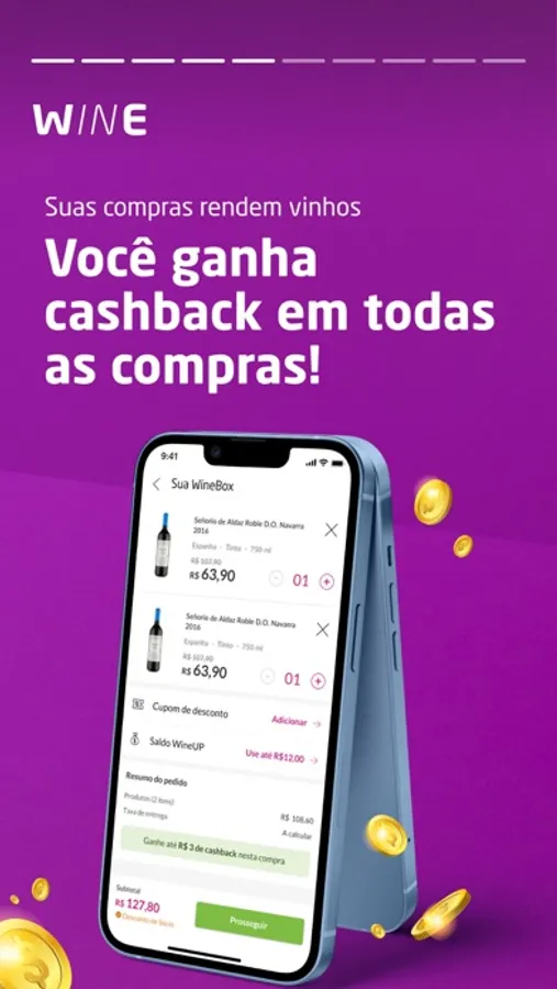 Baixe agora o app e compre rótulos de alta qualidade com apenas alguns cliques e no conforto do seu lar! E mais, você consegue garantir benefícios exclusivos, acumular 3x mais cashback e comprar vinho com descontos.