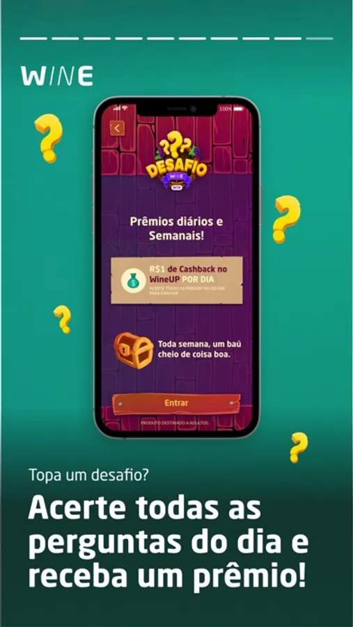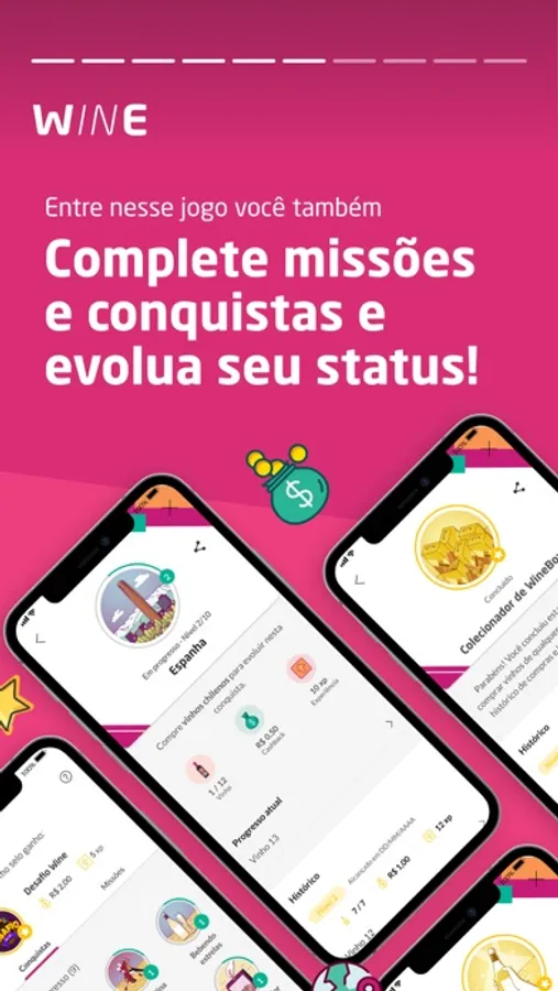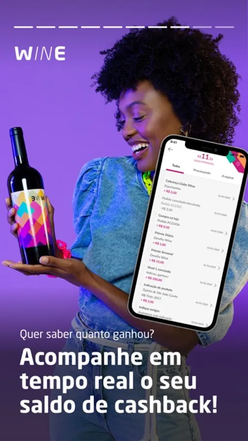O WineUP é o programa de recompensas da Wine. Todas as compras realizadas no app, na loja e assinaturas do Clube Wine geram dinheiro de volta. O Sócio Wine acumula 3x mais! Complete as Missões e Conquistas e suba de nível. Como recompensa, você garante mais desconto da próxima vez que realizar uma compra!