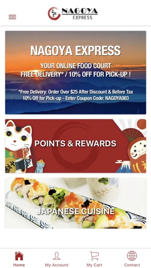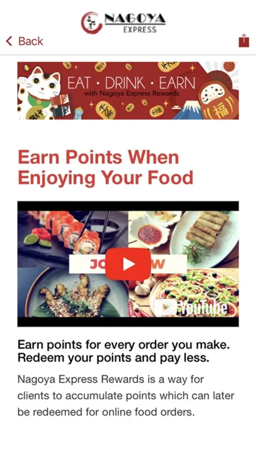 Nagoya Express Rewards is a way for clients to accumulate points which can later be redeemed for online food orders.