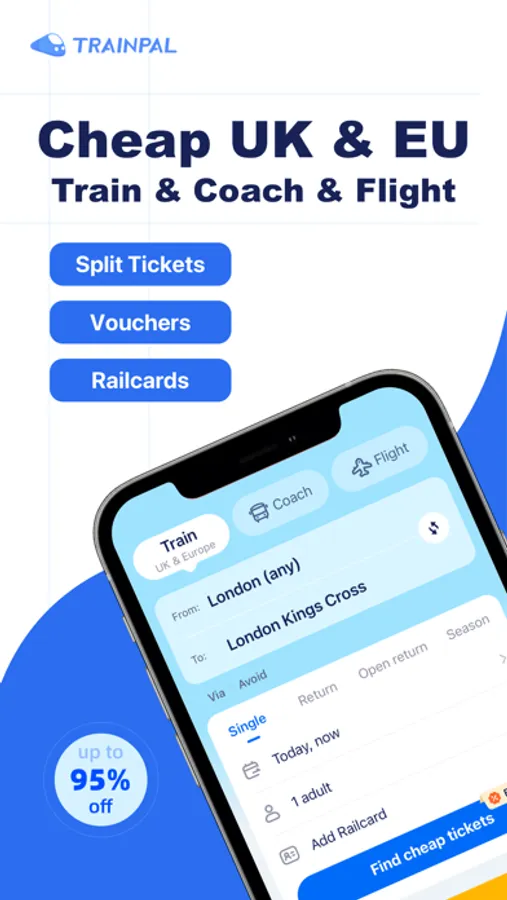 • Discounted fares: TrainPal supports all Railcards and helps you find the best deal for train tickets online.
