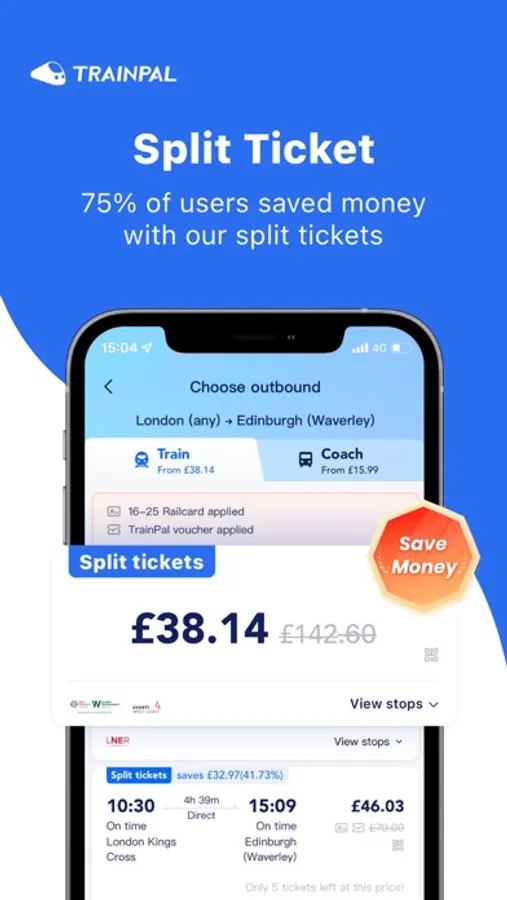 • Split-ticketing: TrainPal can help travellers save up to 95% of the original rail fare in the UK! TrainPal also offers a flexible split-ticketing option to help travellers save even more.