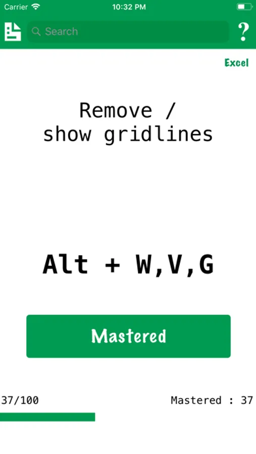 Welcome to Exceed, the platform that allows you to master a multitude of useful shortcuts in Microsoft Excel. Simply tap the master button to learn each shortcut one by one or use the search bar to find specific shortcuts quickly. If you need to work with multiple shortcuts at once, check out Cheat Sheet mode. Cheat Sheet mode is activated by tapping the paper icon to the left of the search bar. In this view you can see all Exceed shortcuts in one place!