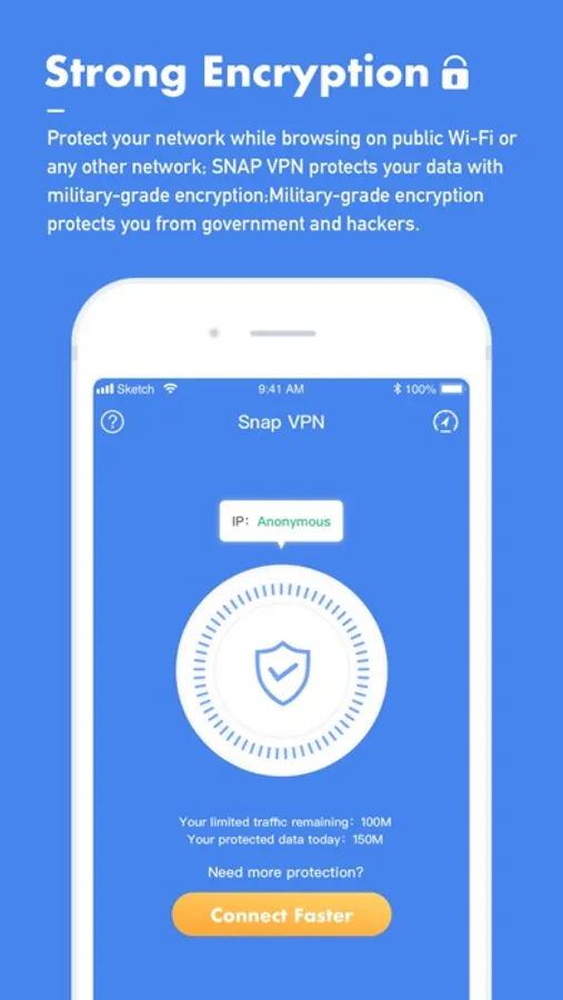 Snap VPN can hide your real IP address. Your online data will be encrypted. With a higher VPN speed. When using public WiFi hotspots at airports, hotels, schools, and coffee shops. Your original online IP will not be exposed. Snap VPN does not store any access log.
