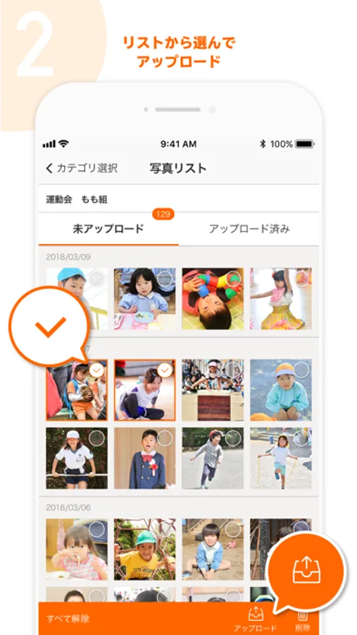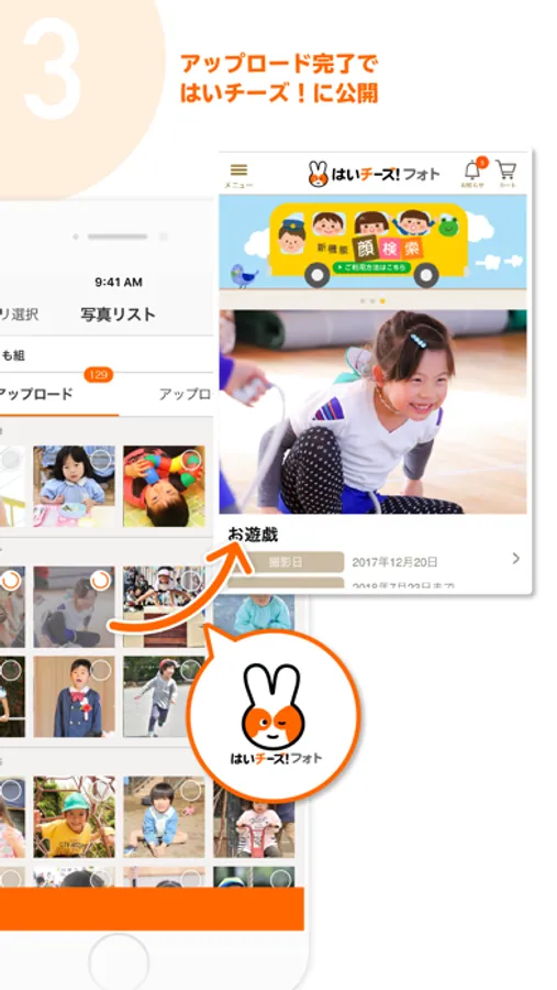 園児の写真を撮影し簡単にはいチーズ!フォトに掲載することができます。