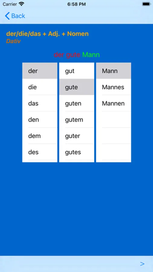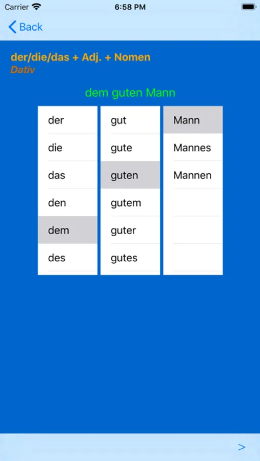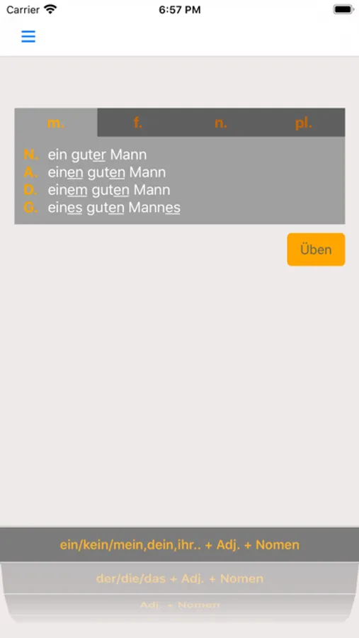 Using this app you can learn and practice all forms of adjective endings in German language.