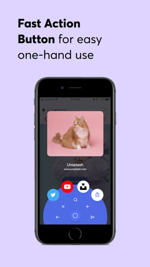 Opera lets you explore the web using just one hand, making it the best and easiest mobile browser for iOS. Choose between standard Bottom Navigation and the Fast Action Button. When selected, the FAB is always available on your browser screen and gives you direct access to your Instant Search. You can hold and swipe it for your most recent tabs, or to reload, close or share the current tab with your computer's browser.
