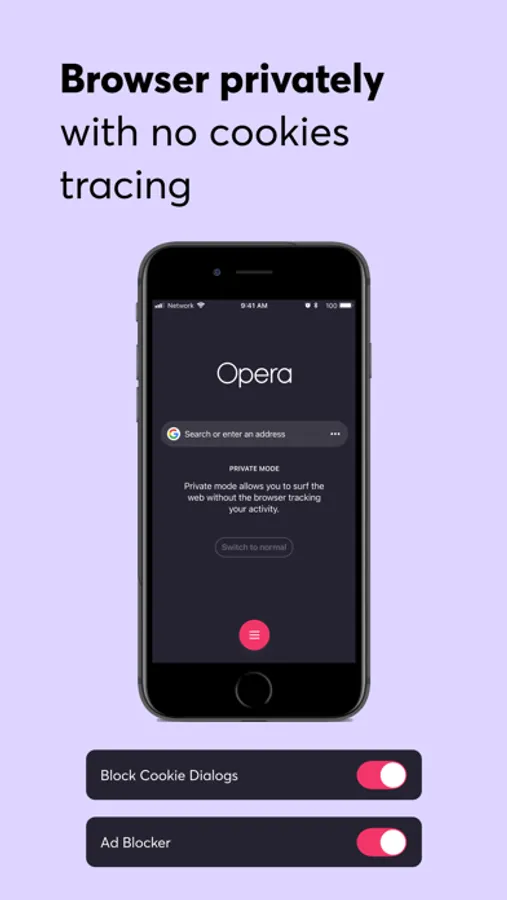 Opera Browser employs the very latest in web technologies to keep you safe and give you maximum privacy protection online. The inbuilt Apple Intelligent Tracking Prevention (ITP) blocks 3rd party tracking cookies, along with a Private Browsing Mode that helps you stay completely anonymous online. The browser also features Opera’s Cryptojacking Protection, which reduces the risk of your mobile devices overheating or running out of battery when you are browsing the web.