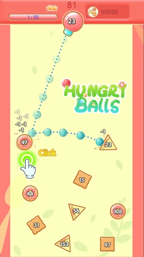 ◉ Swipe your finger and throw balls, make them roll among the food.