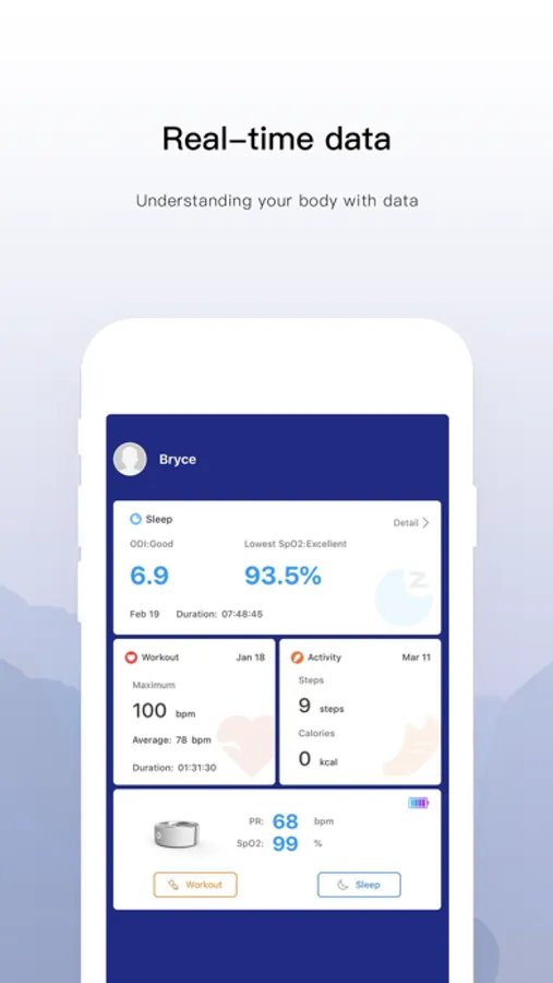 MegaHealth(Pro) works with MegaRing to help monitoring peripheral oxygen saturation and heart rate, generate health reports and analysis.