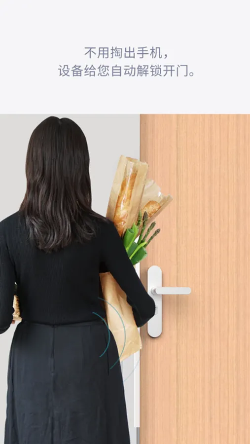 You can lock or unlock the door through your mobile phone. Even if you don't need to take out your phone from the trouser pocket, the device can automatically unlock the door.