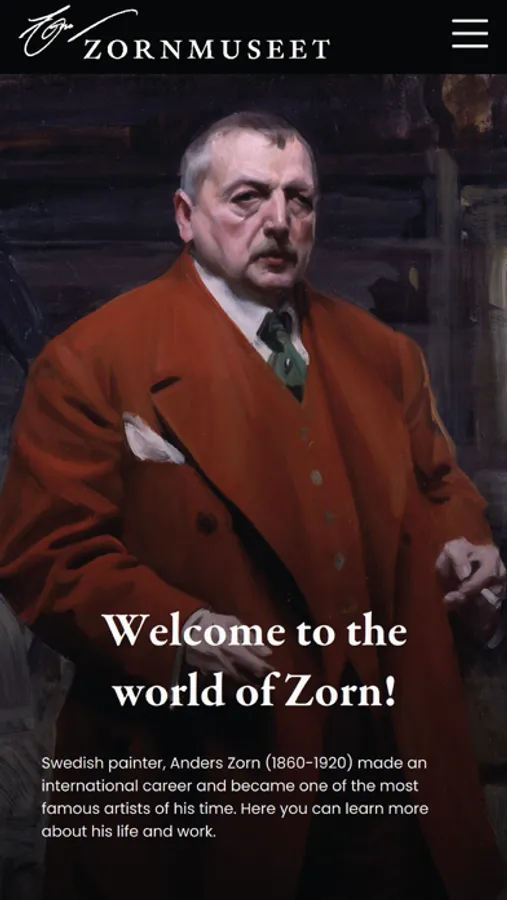 Experience the life and work of Sweden’s master painter, Anders Zorn directly on your mobile phone with The Zorn Museum app. Listen to stories about Zorn's most famous works of art in the free audio guide and take a look inside his home in Mora, The Zorn House. Follow the artist's exciting life in ”Zorn the Ztory”, a game that appeals to both adults and children who want to learn more about the famous Swede.