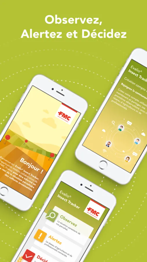 • Saisir des alertes géolocalisées en précisant le type de culture et de ravageur, le niveau d’infestation et son rayon d’action,