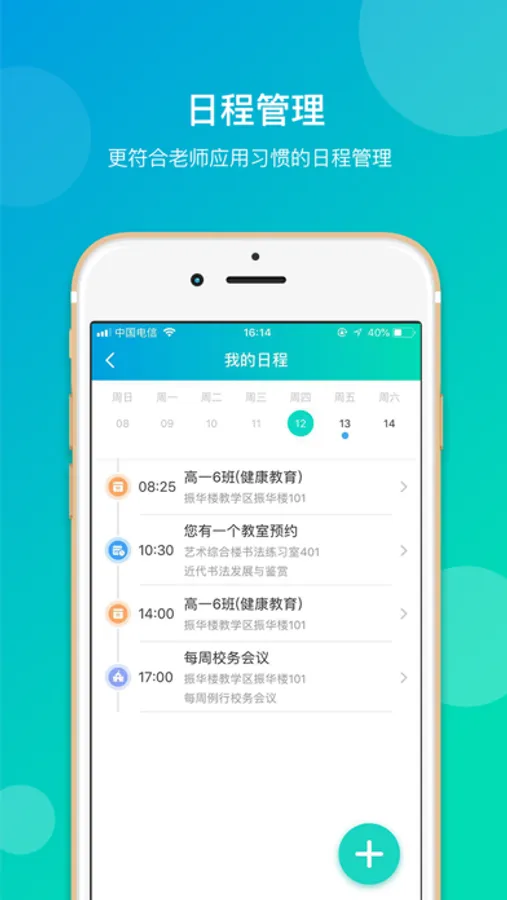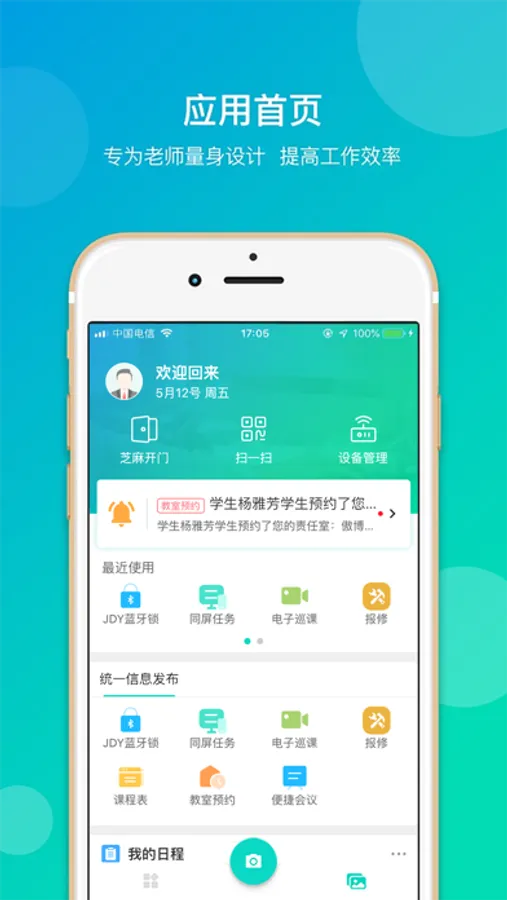 outbook 为中小学教师提供考勤统计、预约教室、电子回执、设备管理、请假管理、班级相册、班级通知、访客管理、日程安排等功能,同时与物联网设备相结合,多维度整合校方数据,为学校提供智能化解决方案。