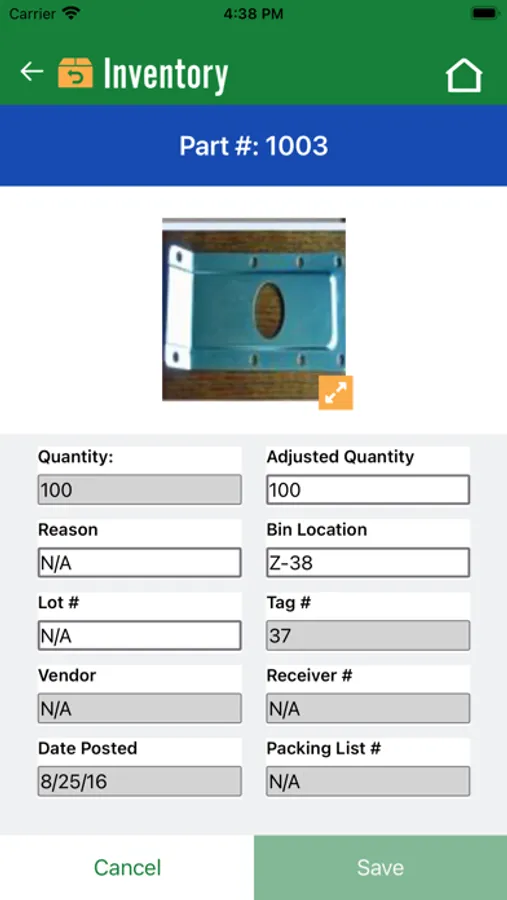 Stacking filters allow users to narrow the results for the part needed. From a single click see the quantity shown for the selected part and have the option to adjust the quantity to the desired amount. Once quantity for the selected part is adjusted, a reason for the change is automatically entered but can be adjusted. Users can also adjust the Bin Location and Lot Number while on the screen.