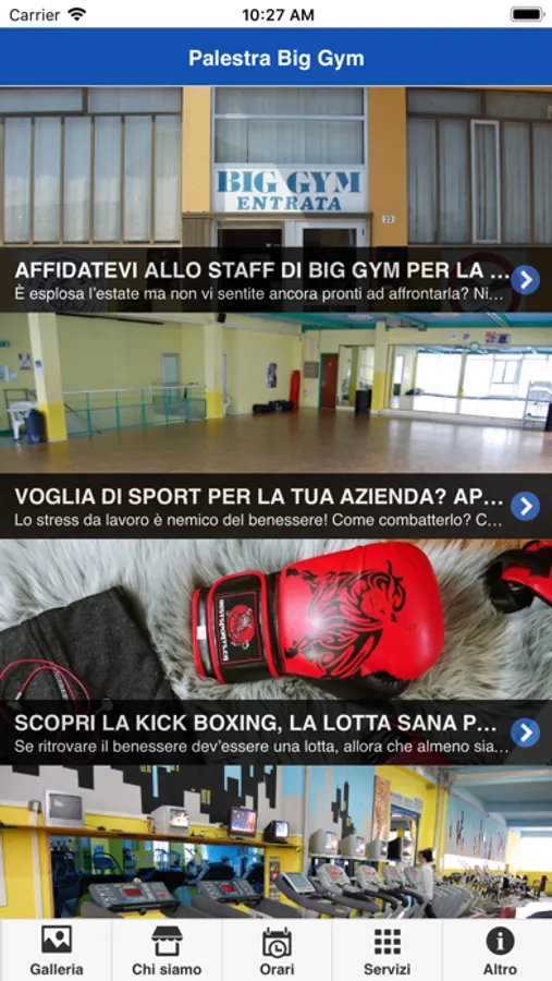 Un'App per sapere sempre come e quando liberare il proprio corpo dallo stress, dalla pigrizia e dalle energie negative. Big Gym è la palestra di Pesaro che ha scelto di rendere facilmente accessibili le informazioni relative ai propri corsi e ai relativi orari attraverso un’applicazione completa e costantemente aggiornata.
