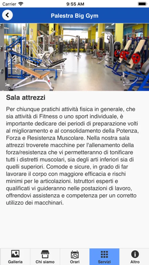 L'App mette a disposizione una breve descrizione delle principali attività qui svolte e una sezione sempre aggiornata in cui sono riportati gli orari dei corsi. Perché è sempre il momento giusto per riacquisire la padronanza del proprio corpo…e basterà visitare l’area Contatti per concordare con lo staff lezioni di prova, modalità di iscrizione e abbonamenti.