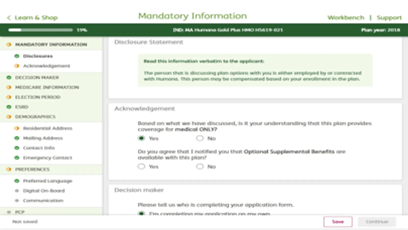 Enrollment HUB is a streamlined paperless application that allows agents to complete Humana and CarePlus applications for both Connected and Offline Enrollments for the following product lines; Medicare Advantage / Medicare Advantage & Prescription Drug / Prescription Drug Plans / Dental & Vision / Medicare Supplement. With Enrollment HUB you can securely store, transmit and track client enrollment information directly with Humana. It’s compatible across multiple web browsers and devices and allows the reuse of consumer data to reduce manual entry by agents so you can spend more time selling.