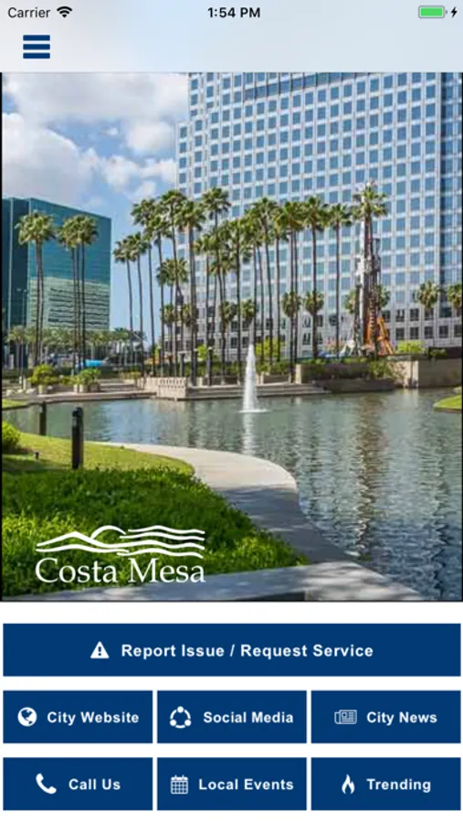 Citizens may also review city related news, link directly to Costa Mesa social media channels, access the city website, view a local event calendar and more. Download the free app and get started today!
