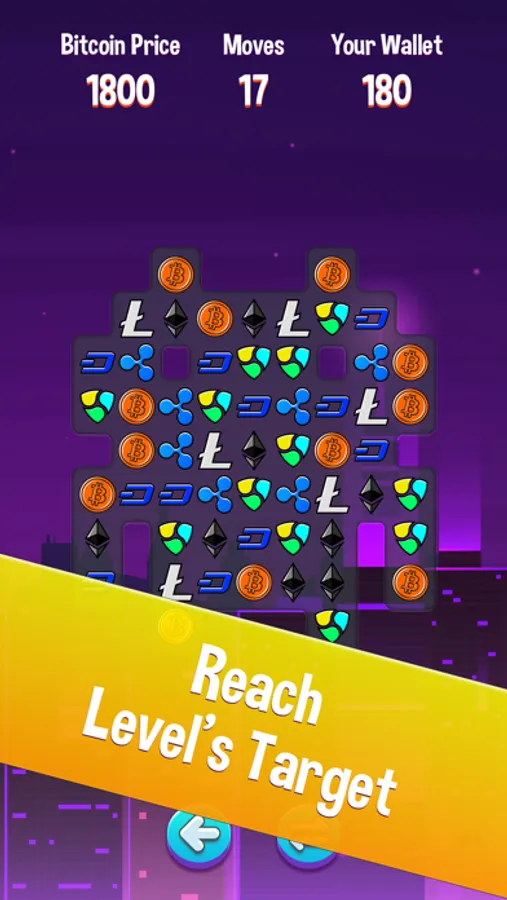 Beat 100 great levels with crunching those crisping cryptos. The goal of a level to reach the level’s Bitcoin price and get one of them. Yes, the price is unstable, just as in the real world. Swap cryptos on the board to make a match of three or more. Try to think of different combos for keeping within available moves, reaching the goal faster, and completing all the levels successfully. If you’re stuck try Shuffle but be careful, it costs you a move. Could you guess what the last level is all about?