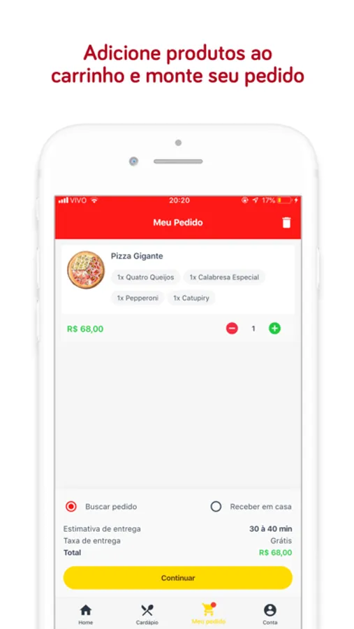 -Receber o pedido diretamente na sua casa ou deixar o pedido feito para retirada no balcão do estabelecimento;