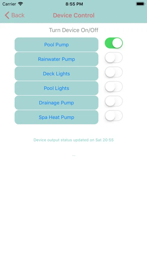 If you have controllable device (such as a light circuit or actuator), clicking on the Device Control menu item will take you to a simple device control page. If your installation does not have any controllable devices, the device list will be empty.